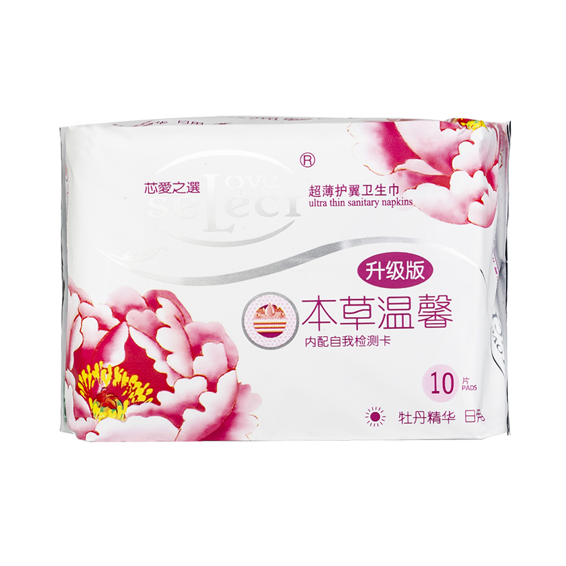 芯愛之選负离子卫生巾牡丹精华款采用二氧化碳超临界萃取牡丹植物精华,辅以负离子生物芯片,促进生物酶氧化,达到完美融合,清爽舒适,富贵芳香。
