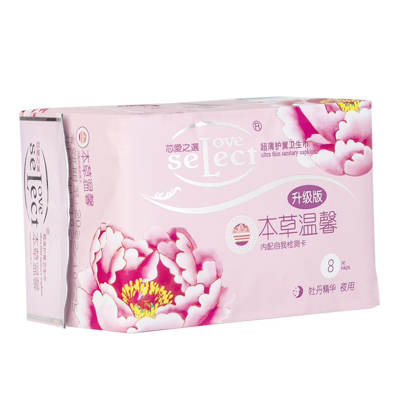 芯愛之選女士健康卫生巾系列全程贴心设计,适合女性经期各个阶段不同需要