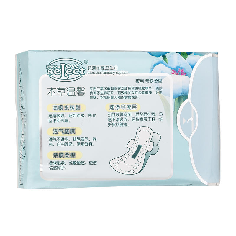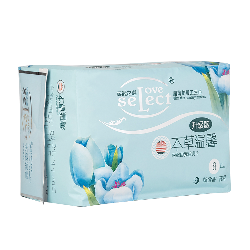 保健护理、机能调节的新一代女性健康产品。芯愛之選负离子卫生巾系采用高科技负离子芯片,配合纯天然药用植物萃取成分,生物亲肤网膜有效护理女性生理环境,无任何副作用;首创性加入远红外抗菌纤维,开辟“医草温经”概念。更亲肤,更透气,更健康,更有效呵护女性经期健康!