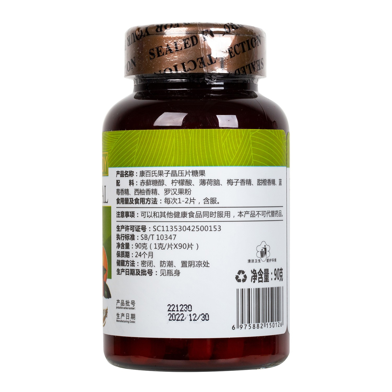 产品名称:康百氏果子晶压片糖果