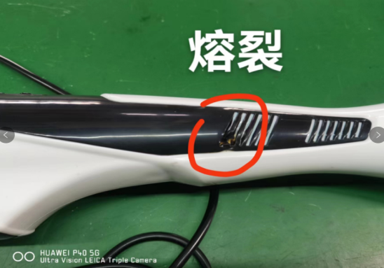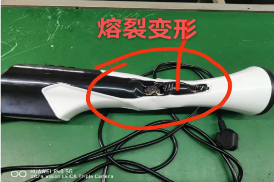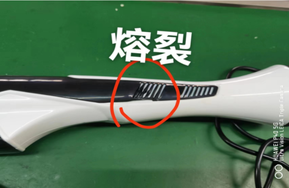 目前公司售后连接收到魔力棒,因客户在使用途中采用棉被、毛毯、衣物遮住出风口造成热风不能及时散热引起魔力棒塑料胶壳熔裂及电气损坏。附图: